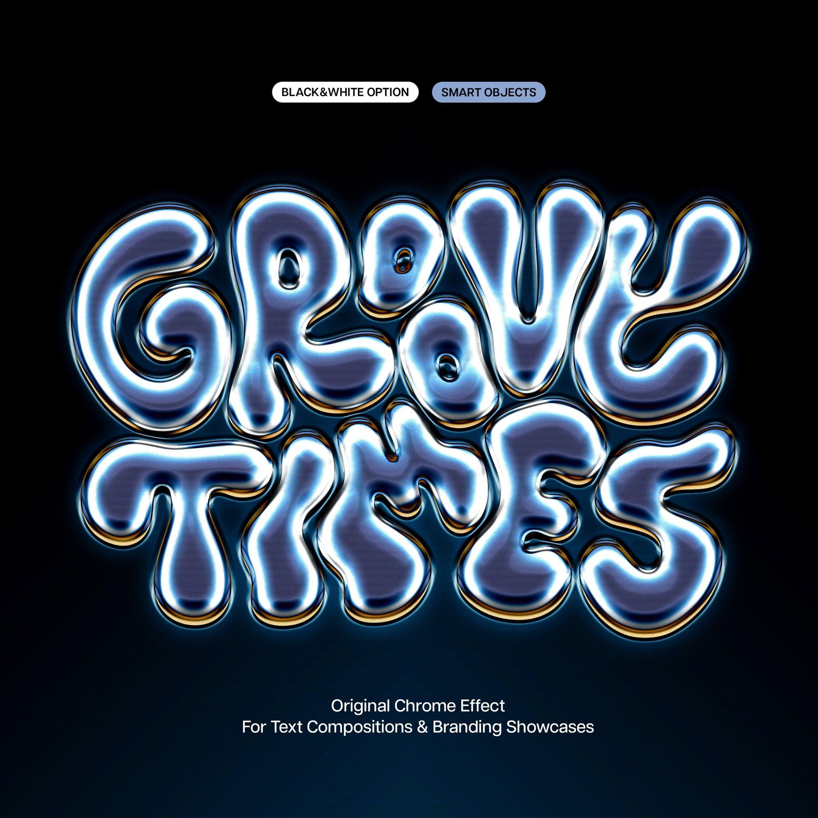 We’ve gotten accustomed to associating Chrome with the Y2K style. There’ve been so many logo mockups, add-ons, graphics, and even fonts celebrating the provocative 2000s aesthetics captured inside liquid chrome metal. We created plenty of those, too, but this time, we’ve designed an effect that would be classy and retro from one side and Y2K from the other — depending on the content you paste inside the Smart Layer.