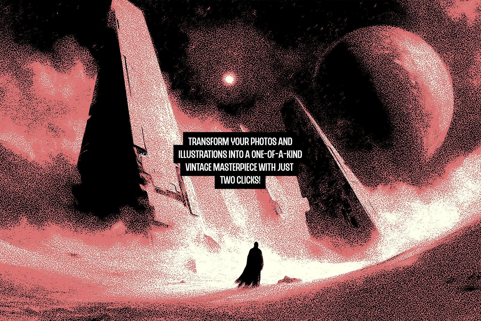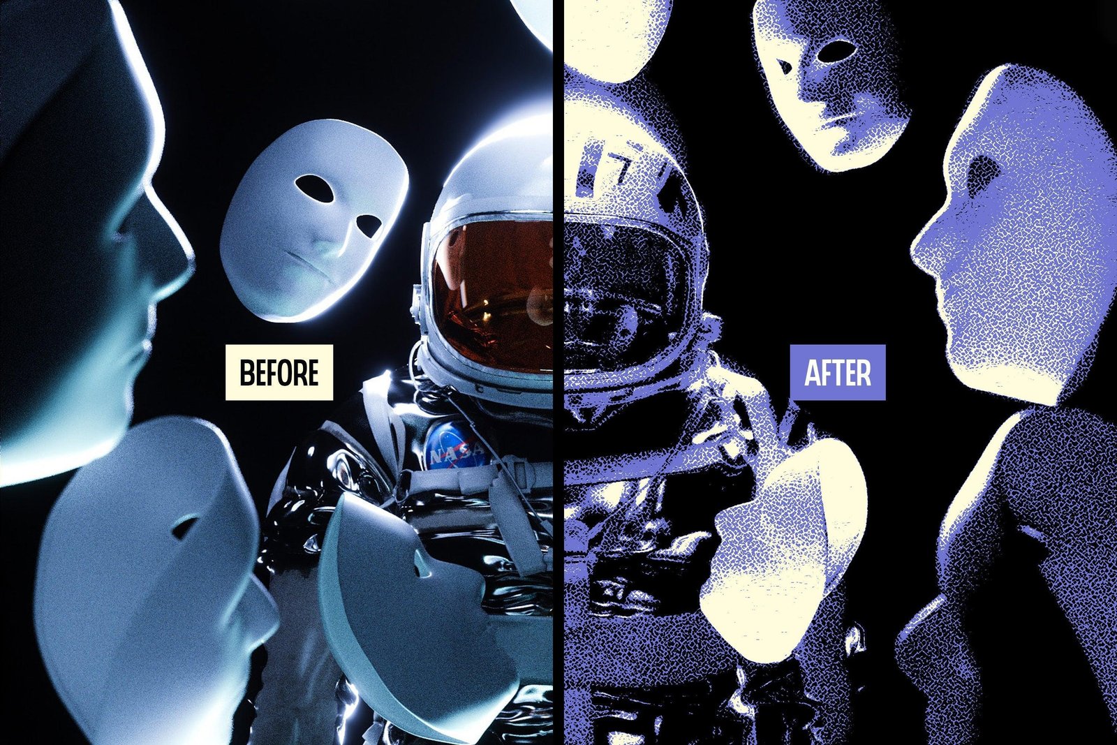 Realistic or artistic? There’s no correct answer to this question, but we know how much a simple pencil can contribute to the artboard. All of a sudden, we bumped into stipples after looking for drawing photo effects in an endless list of creative add-ons. The dots create unique textures rooted in classic printmaking or old-school comic art. While layering them up, they give off a retro allure of drawing techniques, intensify the difference between lights, shadows, and reflection, and add depth to an illustration. This is how the Retro Shader Photo Effect can turn any delicate portrait or bold abstract into a dynamic composition, playing with the viewer’s perception of texture and space.